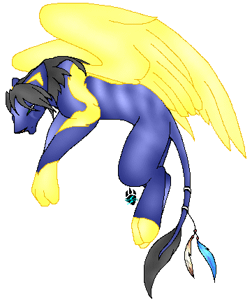 He can mindspeak, and can read the minds of anyone who isn't a Soul/Mage-reader. His wings are fully flight-capable, and he has a thin built like his Father. His eyes are a bit of mutation, they're silver on a green instead of yellow, and because of this mutation his eye sight allows for perfect nightvision but he can also see Auras. An Aura of a God/Demon will be Gold/Black, while the Aura of a good Kat will be blue, and the Aura of a neutral will be silver, whereas the Aura of a being of evil will be a striking red. Because of his ability to see Auras, he is also able to see through illusions, meaning he could possibly see a Kat which is hidden/invisible thanks to an ability or power as their Aura will give them away. This also means that Psychic abilities that try to trick the mind in to thinking creatures/beings that aren't there are there, will not work on him as they'll lack the Auras and he'll be aware of that. The only except is abilities which tap in to his mind - where the setting is created by his mind, and not anothers. This 'gift' is probably thanks to his Father being a CotO.